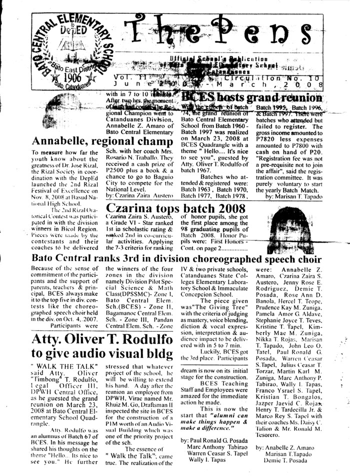 Bida ang Batch 74 ... title: "BCES hosts grand reunion"